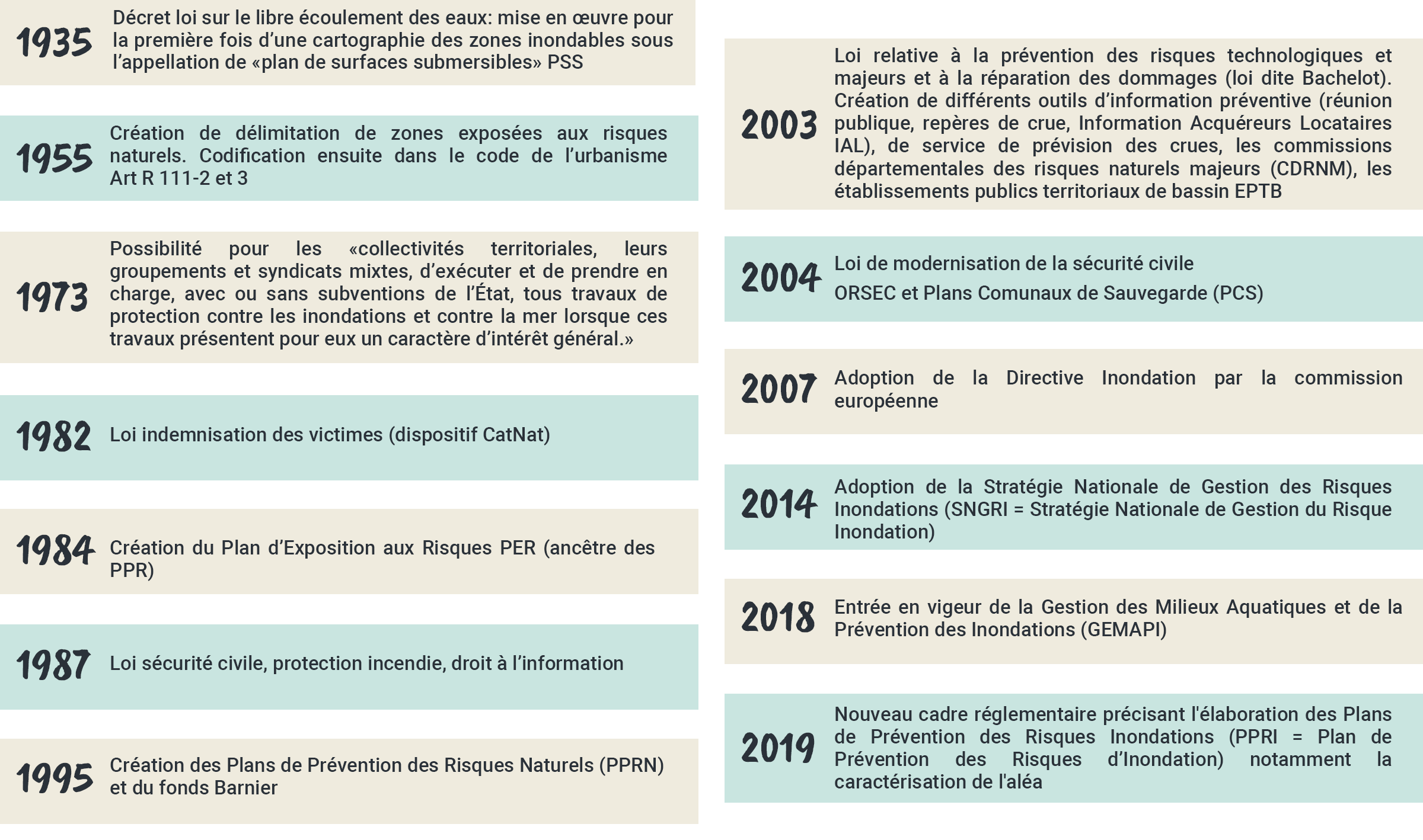 Les principales dates marquant l'évolution de la politique de prévention des inondations