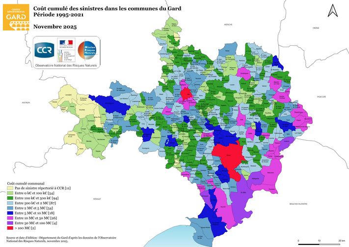 pour Nîmes et Alès et entre 50 et 100 M€ pour 4 autres communes gardoises (Aramon, Aimargues, Bellegarde et Saint-Gilles).