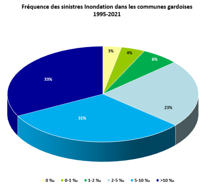 des communes ont une fréquence de sinistres Inondation supérieure à 5‰ (soit 223 communes) et 33% ont une fréquence > 10‰ (soit 114 communes).