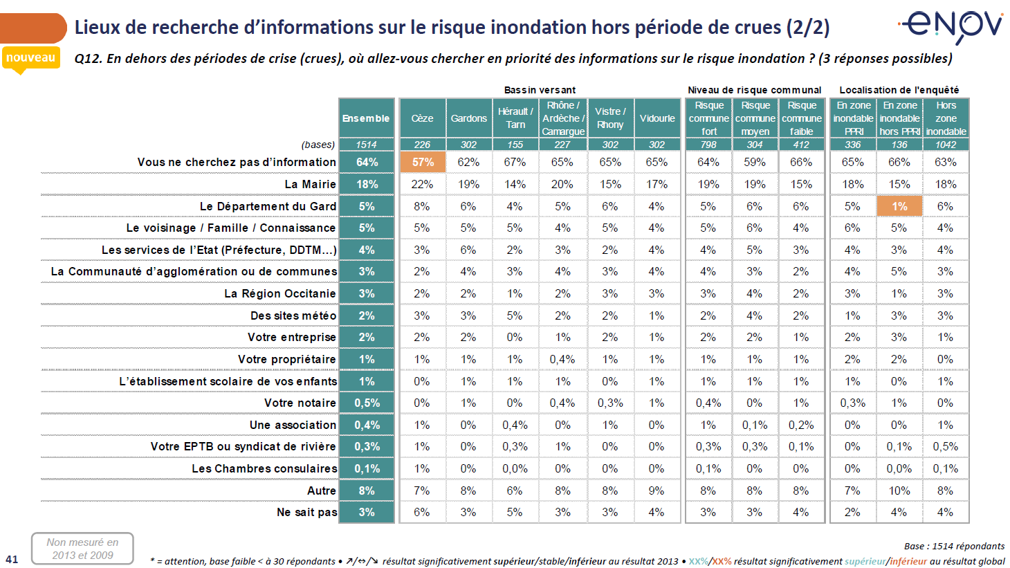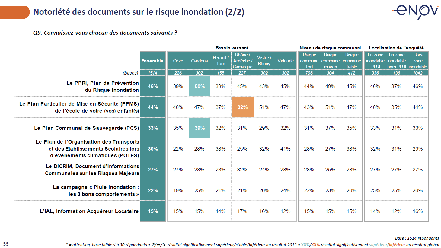Un peu moins d’un tiers des habitants déclarent avoir reçu des informations sur le risque inondation en période de crues, avec un niveau d’information plus élevé dans le bassin versant du Gardons (43%).