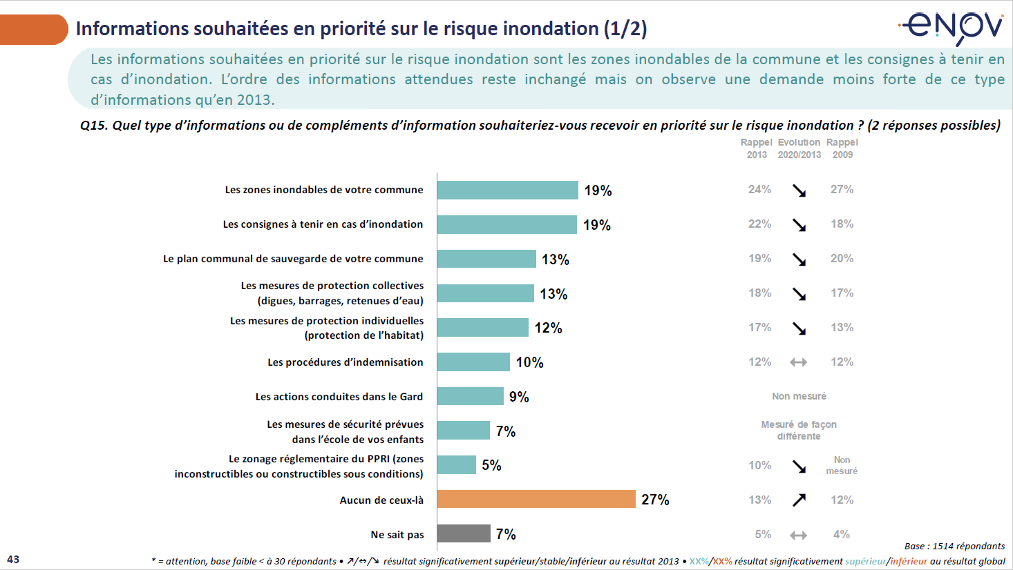 Des enquêtes sur la sensibilisation et la culture du risque inondation ont été réalisées en 2005, 2009 et 2013 par le Département du Gard, en partenariat avec l’EPTB du Vidourle, auprès de la population gardoise et héraultaise du bassin versant du Vidourle.