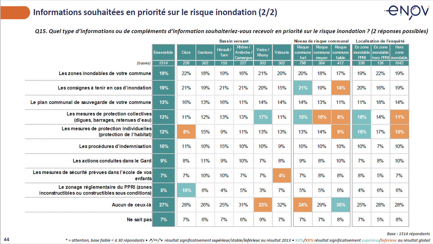 Résultats du sondage sur l'information et la communication sur le risque