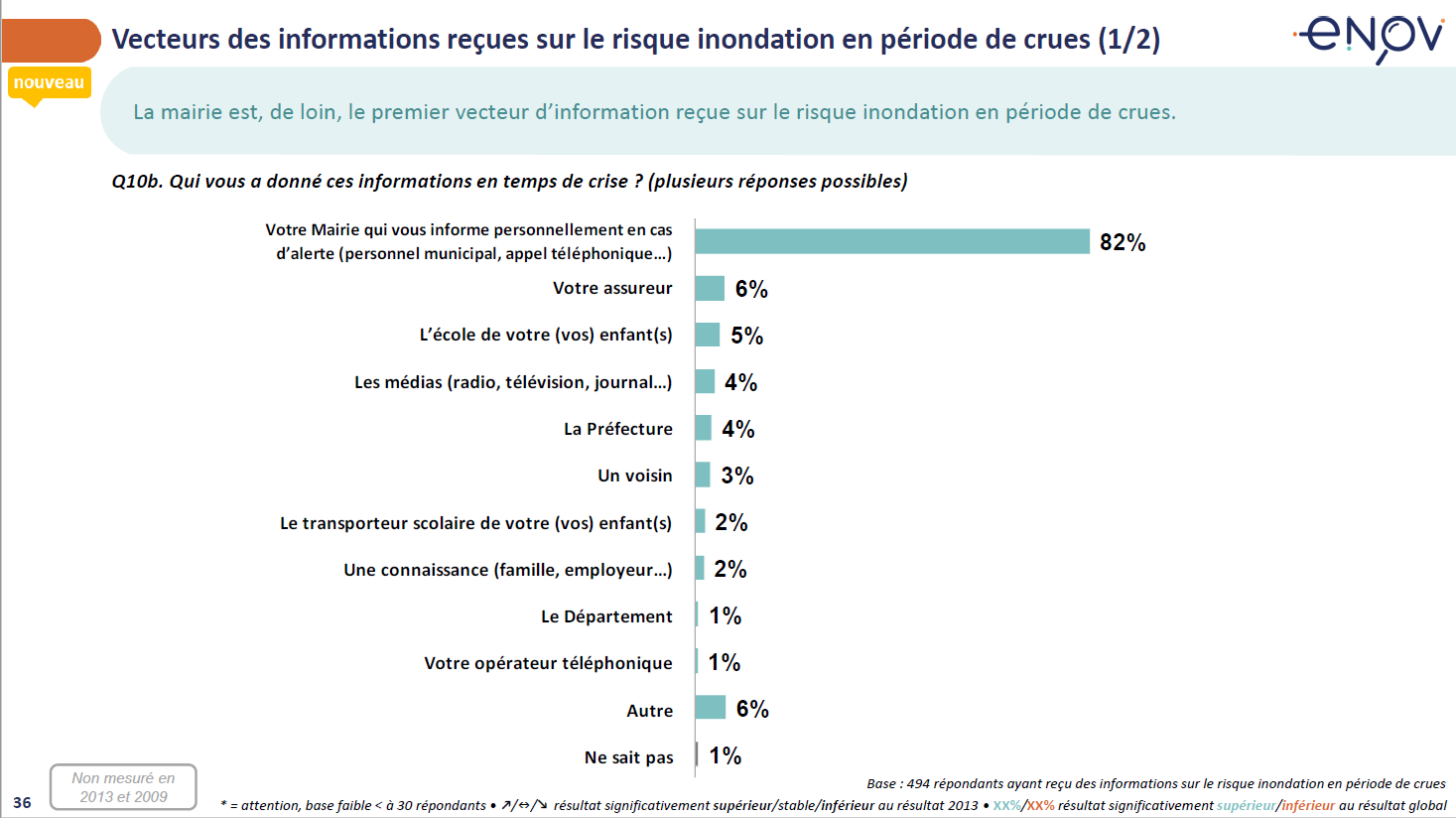 Elles sont, avant tout, relayées par les mairies qui restent de très loin le principal vecteur d’information en période de crise (82% de ceux ayant reçu une information), les autres canaux ayant un impact plus marginal.