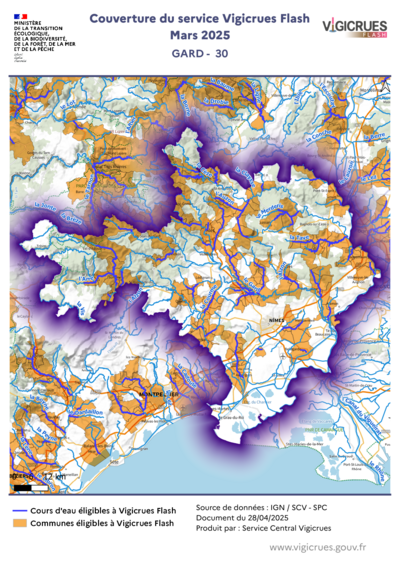 Vigicrues Flash est un service gratuit de détection automatique du risque de crue soudaine, développé par le réseau Vigicrues du Ministère de la transition écologique associé à APIC de Météo France.