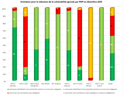 De même, 100% des communes du PAPI Gard Rhodanien bénéficie d'une animation menée par la CA du Grand Avignon avec le bureau d'étude Mayane et la chambre d'agriculture du Gard pour les communes du Plan Rhône.