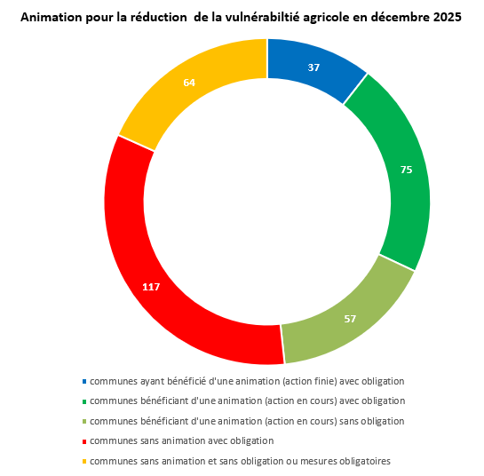 des communes gardoises (169 communes) font ou ont fait l'objet d'une démarche de réduction de la vulnérabilité agricole dont 112 communes soumises à obligation. On inclut ici les 49 communes du PAPI Vidourle dont l'opération va commencer en 2026.