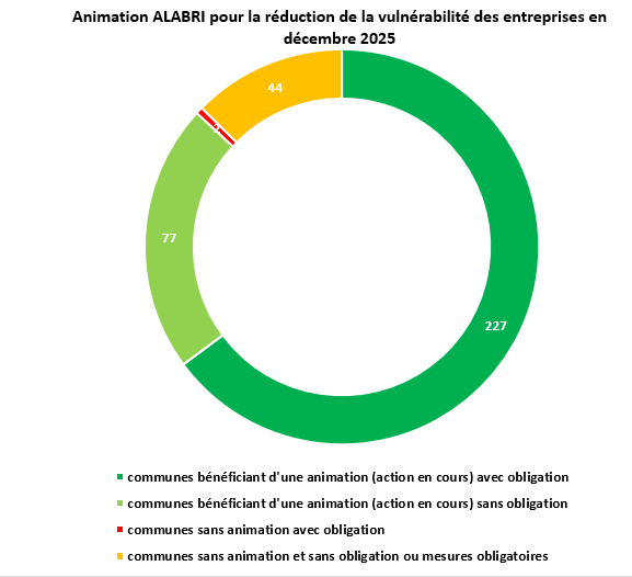 des communes gardoises (304 communes) font l'objet d'une démarche de réduction de la vulnérabilité des entreprises type ALABRI dont 227 communes soumises à obligation. Sont inclues ici les communes des PAPI Vidourle et Cèze dont les opérations vont démarrer en 2026.