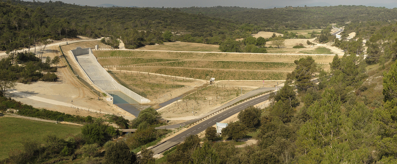 - Les aménagements hydrauliques : regroupant l’ensemble des ouvrages qui permettent : soit de stocker provisoirement des écoulements provenant d’un bassin, sous-bassin ou groupement de sous-bassins hydrographiques (exemple: barrage écrêteur de crues ou bassin de stockage), soit le ressuyage des entrées d’eau en provenance de la mer.