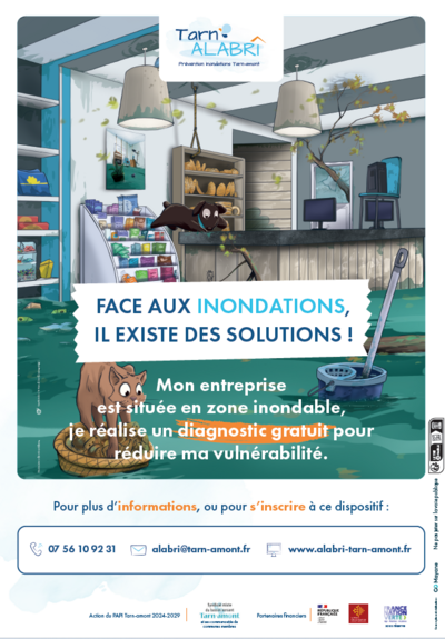Le Syndicat mixte d'aménagement du Tarn Amont vient de lancer, à l'attention des propriétaires/gestionnaires d'entreprises ou de campings situés en zone inondable, son dispositif Tarn'ALABRI-Eco. Au travers d'un diagnostic gratuit personnalisé de l'activité, il permettra de définir les mesures de protection adpatées pour améliorer la sécurité des personnels, usagers, réduire les dommages et surtour accélérer et faciliter le retour à la normale. Sa mise a été confiée au bureau d'étude Mayane. En cas de travaux, Mayane pourra également accompagner les entreprises dans le montage des dossiers de demande de subvention jusqu'au paiement.(taux de subvention de 40% pour les entreprises de moins de 20 salariés).