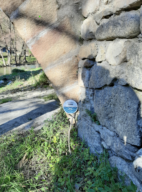 Ainsi un premier macaron a été posé à Arre en novembre dernier, en présence de M. le Maire. Cette commune est en effet exposée au risque d’inondation par débordement de son cours d’eau éponyme. Ce repère témoigne de la hauteur d’eau atteinte lors de la crue de l’Arre de novembre 1994 sur le pont de la montée de l’Orphelinat ; un lieu visible et fréquenté.