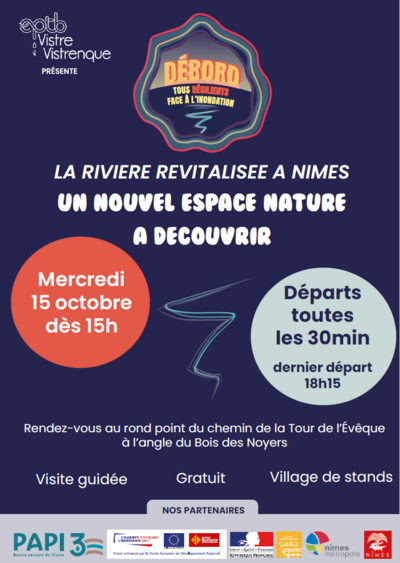 Mercredi 15 octobre, en pleine semaine nationale de la résilience, l’EPTB Vistre Vistrenque en partenariat avec Nîmes Métropole et la ville de Nîmes vous proposent de venir découvrir le Vistre de la Fontaine revitalisé  à Nîmes.
